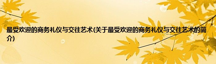 本文关于最受欢迎的商务礼仪与交往艺术的简介就讲解完毕,希望对大家有所帮助。