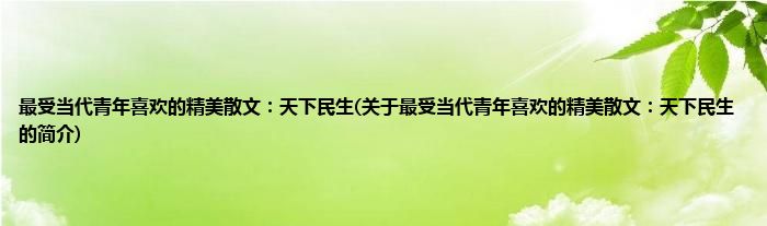 本文关于最受当代青年喜欢的精美散文:天下民生的简介就讲解完毕,希望对大家有所帮助。