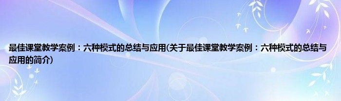 本文关于最佳课堂教学案例:六种模式的总结与应用的简介就讲解完毕,希望对大家有所帮助。