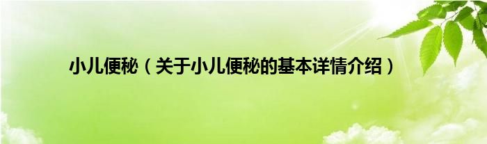 本文关于小儿便秘的基本详情介绍就讲解完毕,希望对大家有所帮助。