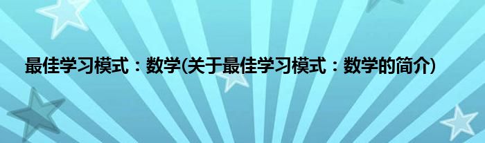 大家好,最佳学习模式:数学,关于最佳学习模式:数学的简介很多人还不知道,现在让我们一起来看看吧!