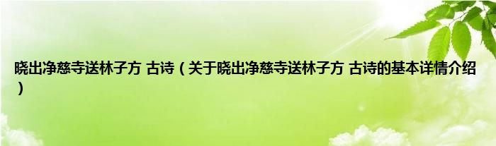 本文关于晓出净慈寺送林子方 古诗的基本详情介绍就讲解完毕,希望对大家有所帮助。