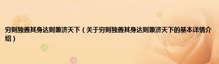 本文关于穷则独善其身达则兼济天下的基本详情介绍就讲解完毕,希望对大家有所帮助。