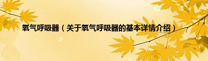 本文关于氧气呼吸器的基本详情介绍就讲解完毕,希望对大家有所帮助。