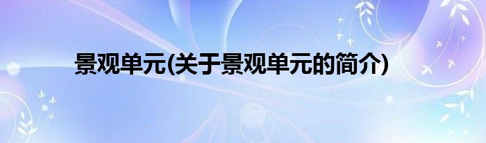 大家好,景观单元,关于景观单元的简介很多人还不知道,现在让我们一起来看看吧!