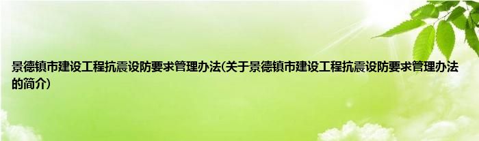 大家好,景德镇市建设工程抗震设防要求管理办法,关于景德镇市建设工程抗震设防要求管理办法的简介很多人还不知道,现在让我们一起来看看吧!