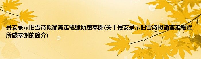 大家好,景安录示旧雪诗拟简斋走笔赋所感奉谢,关于景安录示旧雪诗拟简斋走笔赋所感奉谢的简介很多人还不知道,现在让我们一起来看看吧!