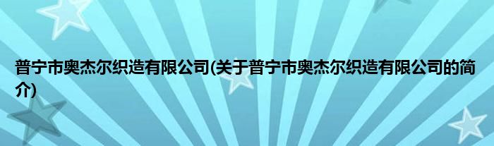 本文关于普宁市奥杰尔织造有限公司的简介就讲解完毕,希望对大家有所帮助。