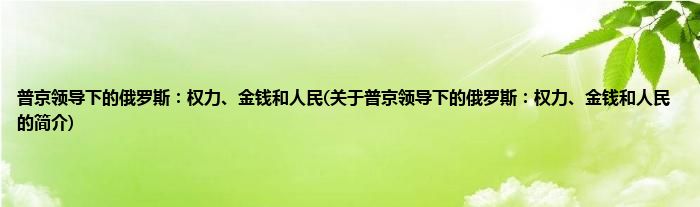 大家好,普京领导下的俄罗斯:权力、金钱和人民,关于普京领导下的俄罗斯:权力、金钱和人民的简介很多人还不知道,现在让我们一起来看看吧!