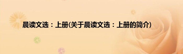 本文关于晨读文选:上册的简介就讲解完毕,希望对大家有所帮助。