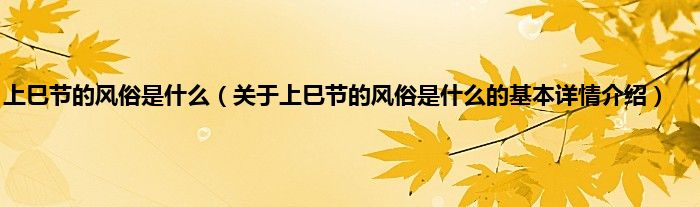 本文关于上巳节的风俗是什么的基本详情介绍就讲解完毕,希望对大家有所帮助。