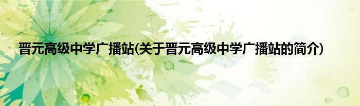 1、 晋元高级中学广播站由上海市晋元高级中学创办于2006年,前身为晋元高级中学校广播。