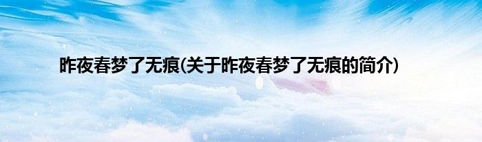 大家好,昨夜春梦了无痕,关于昨夜春梦了无痕的简介很多人还不知道,现在让我们一起来看看吧!
