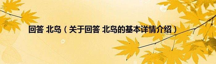 本文关于回答 北岛的基本详情介绍就讲解完毕,希望对大家有所帮助。