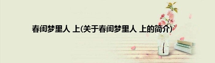 大家好,春闺梦里人 上,关于春闺梦里人 上的简介很多人还不知道,现在让我们一起来看看吧!
