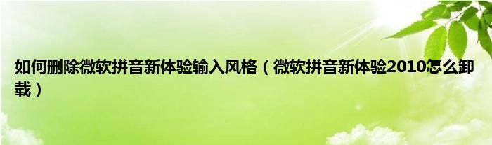 大家好,精选小编来为大家解答以上问题。如何删除微软拼音新体验输入风格,微软拼音新体验2010怎么卸载很多人还不知道,现在让我们一起来看看吧!