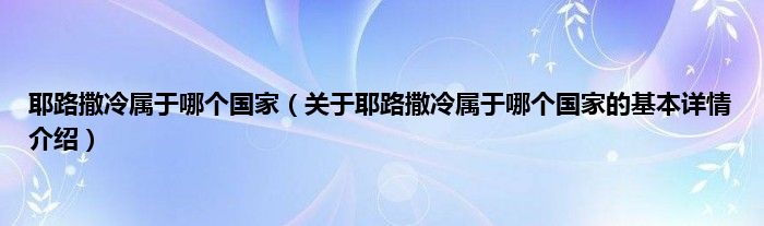 本文关于耶路撒冷属于哪个国家的基本详情介绍就讲解完毕,希望对大家有所帮助。