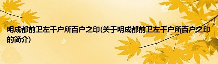 1、 明成都前卫左千户所百户之印是重庆中国三峡博物馆收藏的玺印符牌。