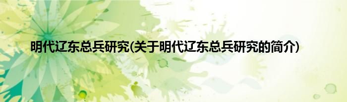 本文关于明代辽东总兵研究的简介就讲解完毕,希望对大家有所帮助。