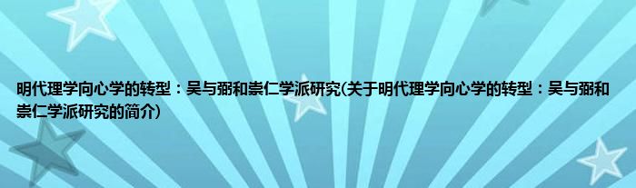 本文关于明代理学向心学的转型:吴与弼和崇仁学派研究的简介就讲解完毕,希望对大家有所帮助。