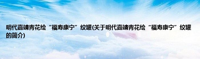 本文关于明代嘉靖青花绘“福寿康宁”纹罐的简介就讲解完毕,希望对大家有所帮助。