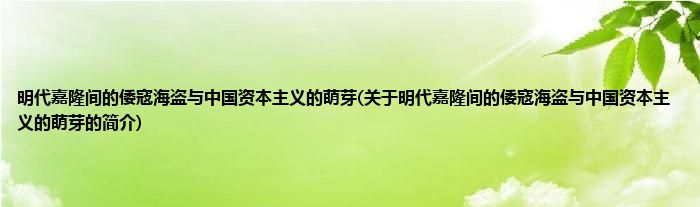 本文关于明代嘉隆间的倭寇海盗与中国资本主义的萌芽的简介就讲解完毕,希望对大家有所帮助。