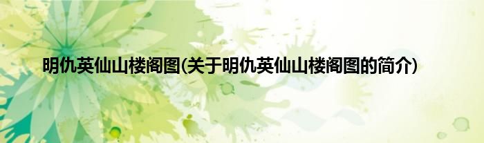1、 《明仇英仙山楼阁图》是明代著名画家仇英创作的一幅绢本设色画。