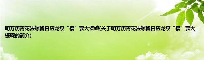 明万历青花法螺留白应龙纹“福”款大瓷碗(关于明万历青花法螺留白应龙纹“福”款大瓷碗的简介)