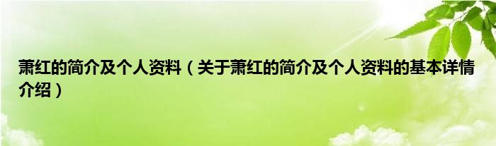 本文关于萧红的简介及个人资料的基本详情介绍就讲解完毕,希望对大家有所帮助。