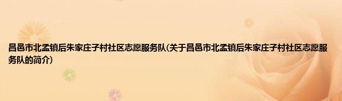 1、 昌邑市北孟镇后朱家庄子村社区志愿服务队是由昌邑市文明办领导下的志愿团体。