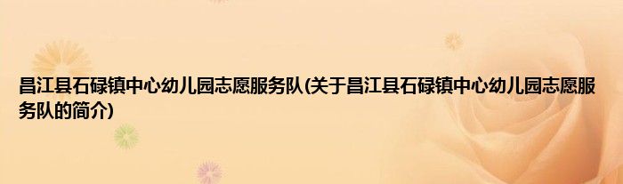 1、 昌江县石碌镇中心幼儿园志愿服务队是由昌江黎族自治县志愿者协会领导下的志愿团体。