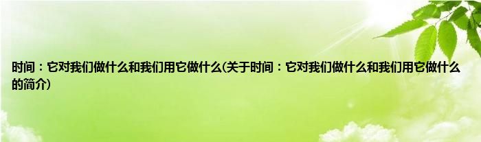 大家好,时间:它对我们做什么和我们用它做什么,关于时间:它对我们做什么和我们用它做什么的简介很多人还不知道,现在让我们一起来看看吧!