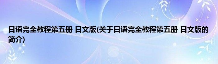 本文关于日语完全教程第五册 日文版的简介就讲解完毕,希望对大家有所帮助。