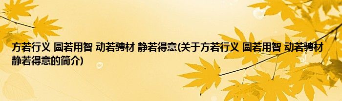本文关于方若行义,圆若用智,动若骋材,静若得意的简介就讲解完毕,希望对大家有所帮助。