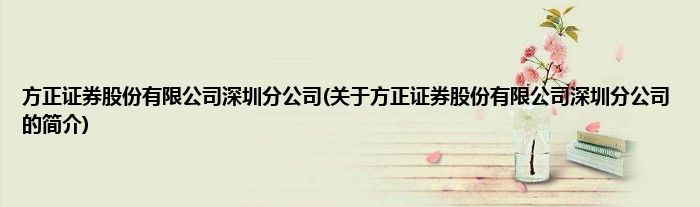 大家好,方正证券股份有限公司深圳分公司,关于方正证券股份有限公司深圳分公司的简介很多人还不知道,现在让我们一起来看看吧!