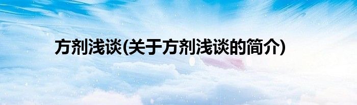 大家好,方剂浅谈,关于方剂浅谈的简介很多人还不知道,现在让我们一起来看看吧!