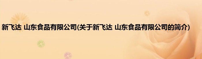 大家好,新飞达 山东食品有限公司,关于新飞达 山东食品有限公司的简介很多人还不知道,现在让我们一起来看看吧!