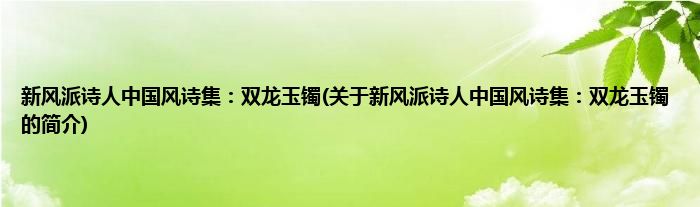 本文关于新风派诗人中国风诗集:双龙玉镯的简介就讲解完毕,希望对大家有所帮助。