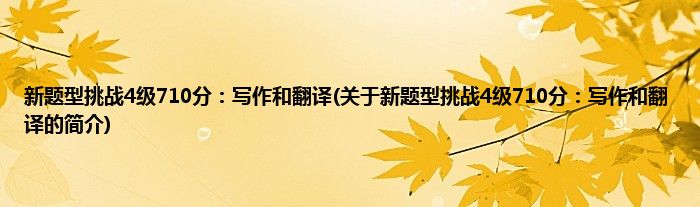 大家好,新题型挑战4级710分:写作和翻译,关于新题型挑战4级710分:写作和翻译的简介很多人还不知道,现在让我们一起来看看吧!