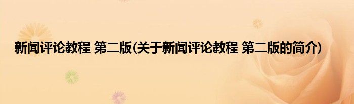 大家好,新闻评论教程 第二版,关于新闻评论教程 第二版的简介很多人还不知道,现在让我们一起来看看吧!