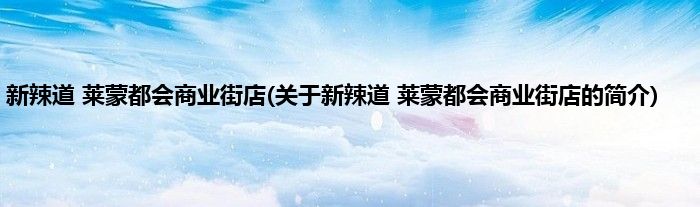 大家好,新辣道 莱蒙都会商业街店,关于新辣道 莱蒙都会商业街店的简介很多人还不知道,现在让我们一起来看看吧!