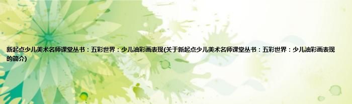 本文关于新起点少儿美术名师课堂丛书:五彩世界:少儿油彩画表现的简介就讲解完毕,希望对大家有所帮助。