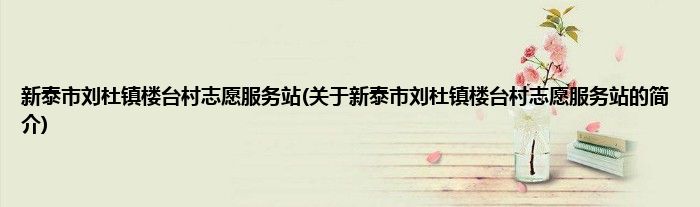 本文关于新泰市刘杜镇楼台村志愿服务站的简介就讲解完毕,希望对大家有所帮助。