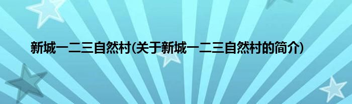 本文关于新城一二三自然村的简介就讲解完毕,希望对大家有所帮助。