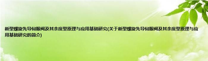 本文关于新型螺旋先导伺服阀及其余度型原理与应用基础研究的简介就讲解完毕,希望对大家有所帮助。