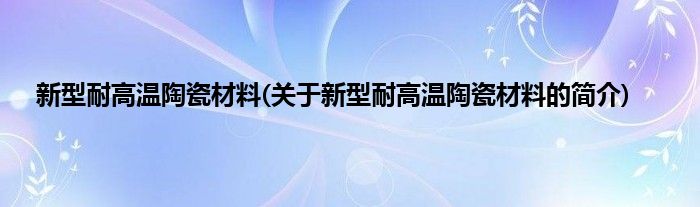 本文关于新型耐高温陶瓷材料的简介就讲解完毕,希望对大家有所帮助。