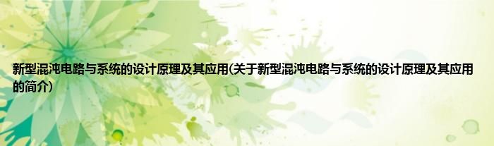 本文关于新型混沌电路与系统的设计原理及其应用的简介就讲解完毕,希望对大家有所帮助。