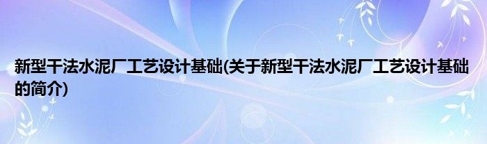 大家好,新型干法水泥厂工艺设计基础,关于新型干法水泥厂工艺设计基础的简介很多人还不知道,现在让我们一起来看看吧!