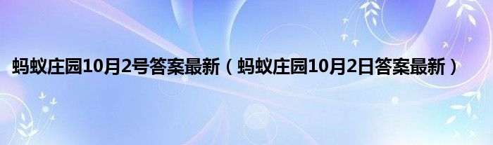 大家好,精选小编来为大家解答以上问题。蚂蚁庄园10月2号答案最新,蚂蚁庄园10月2日答案最新很多人还不知道,现在让我们一起来看看吧!