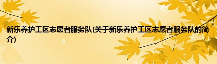 本文关于新乐养护工区志愿者服务队的简介就讲解完毕,希望对大家有所帮助。
